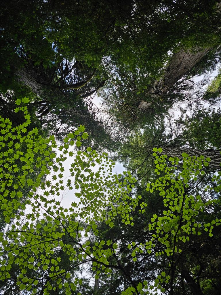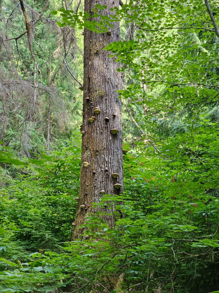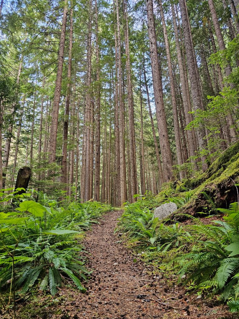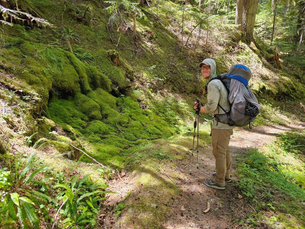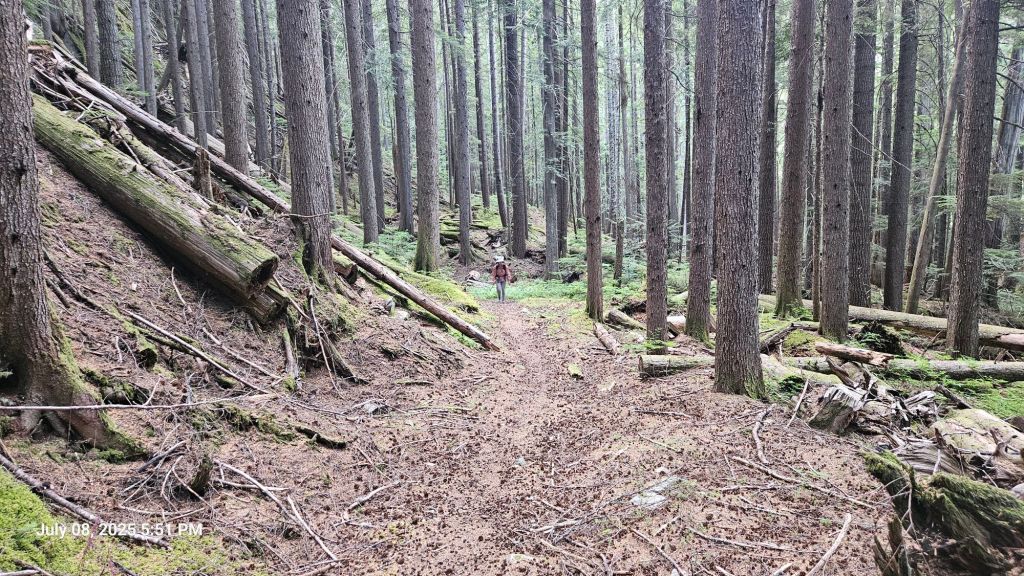 On the other side, we were in the most pristine old growth forest. HUGE trees, moss and ferns galore, and a gentle upslope.