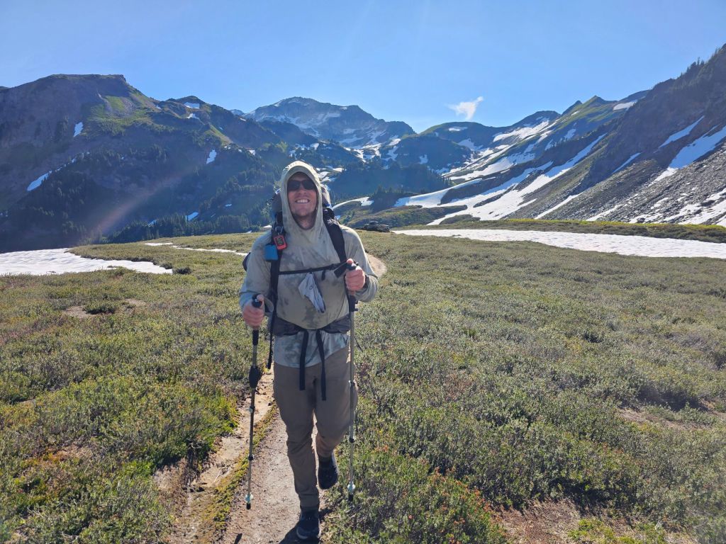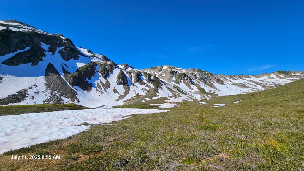 After some morning coffee to jumpstart our motivation, we made the final approach out of the Glacier Peak Wilderness. The climb out was spectacular! Beautiful views of Glacier Peak and the surrounding valley. This is what we missed out on yesterday.