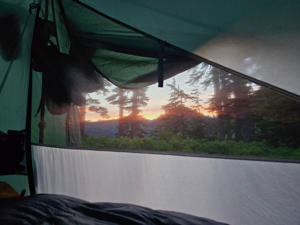 This morning was cold and we didn’t want to get out of our tent. We snoozed through our 5:30 alarm to finally get up a little after 6am. Our hope that a dry night might lead to dry clothes were dashed by the morning dew that seemed to make things even more wet. We’ll eventually dry out from the rain the other day.