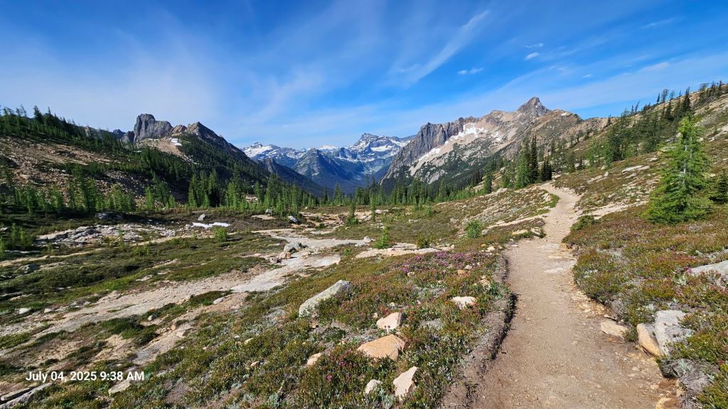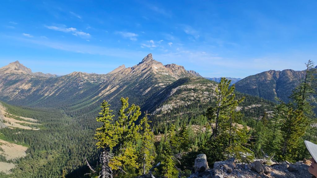 We worked our way up and over the ridge and were greeted by more spectacular views. But we soon descended below the treeline. Today was our approach to Stehekin, ending in North Cascades National Park.