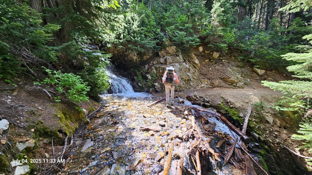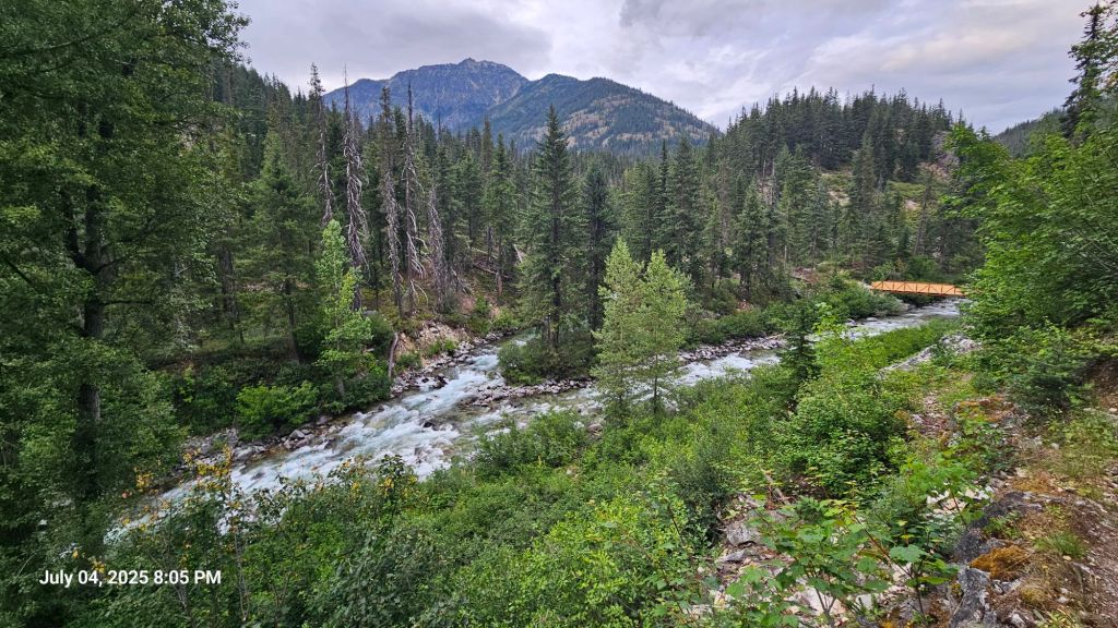 We crossed Highway 20, looking both ways, and started towards North Cascades National Park. It was a long and steady descent. In total, we dropped nearly 4200′ in elevation.