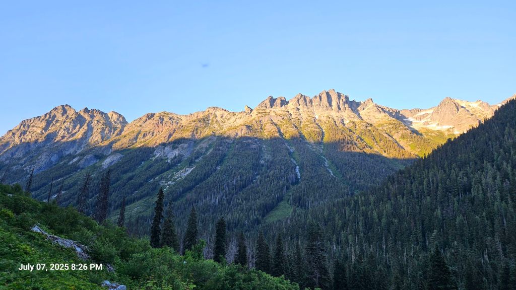 We got to camp late and set up by the fading daylight and our headlamps. We’re good at setting up the tent and everything now – we could probably do it with our eyes closed. In all, it was a good productive day and a departure from our time in Stehekin. Tomorrow, we’ll finish the climb out of Stehekin Valley and continue heading towards Stevens Pass for our next stop at the end of the week.