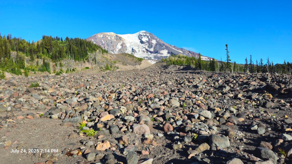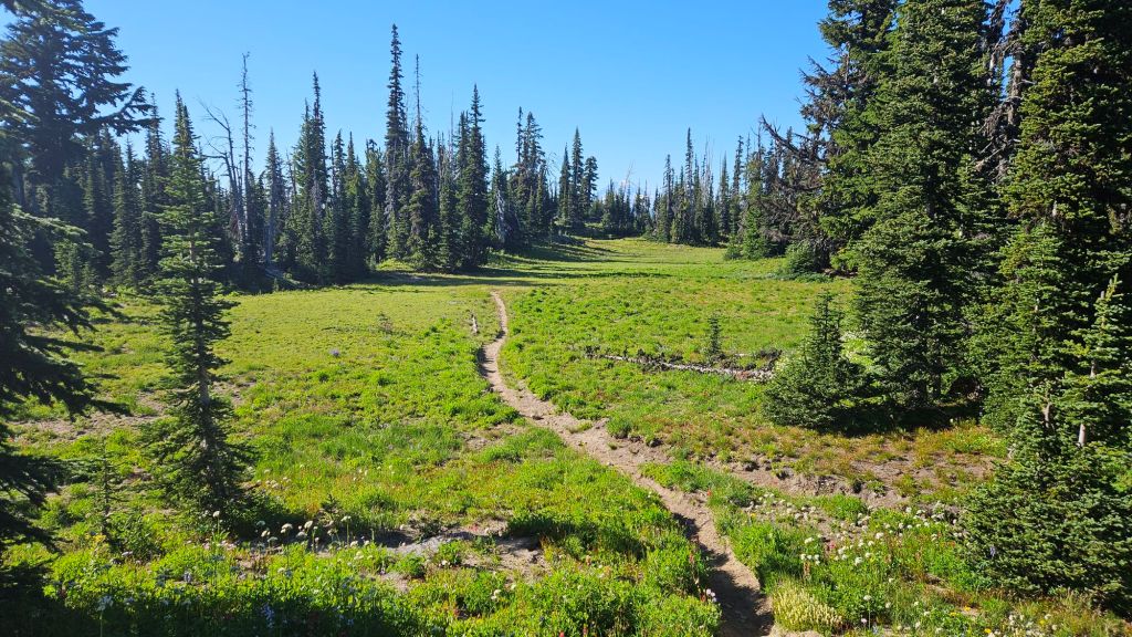 We found our way to some alpiney meadows at the base of the mountain. We had a great view of Mount Rainier off in the distance behind us. Crazy it’s been less than a week since we were at its base.