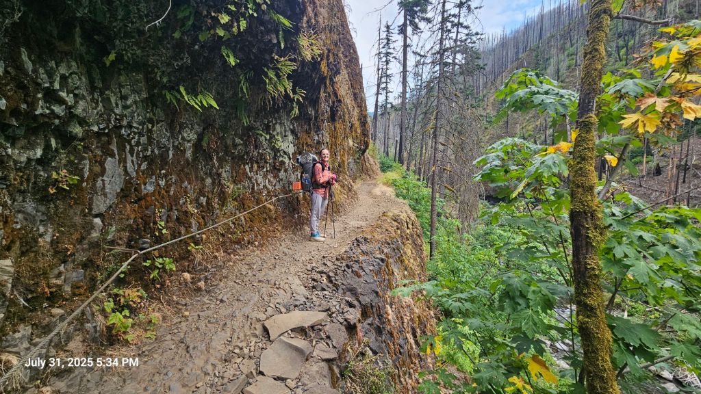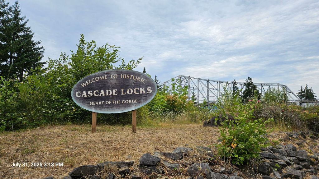Hotels are very nice. It was nice to wake up in a bed and not have to pack it up. We did have to pack everything else up since we yard saled just about everything throughout the room in a combination of cleaning and reorganization. Jason went to look for stickers and a postcard, but the gift shop was lacking in Cascade Locks-specific things. There were postcards featuring Mt. St. Helens, Timberline Lodge (our next stop in two days), generic Oregon, the Columbia River gorge, and even Crater Lake (located on the opposite end of the state). Finally, I found one featuring the Bridge of the Gods locked behind the counter. They were also without any Cascade Locks stickers to add to our bear cans. It’s astonishing how a town that plays home the 2-day PCT festival can be so blasé about being the only incorporated city along the PCT. Maybe they’re still going through some growing pains as the trail popularity has picked up in recent years?