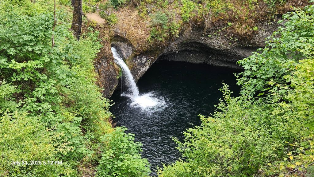 The highlight of the trail is Tunnel Falls. The trail goes inside a lava tube behind the waterfall.