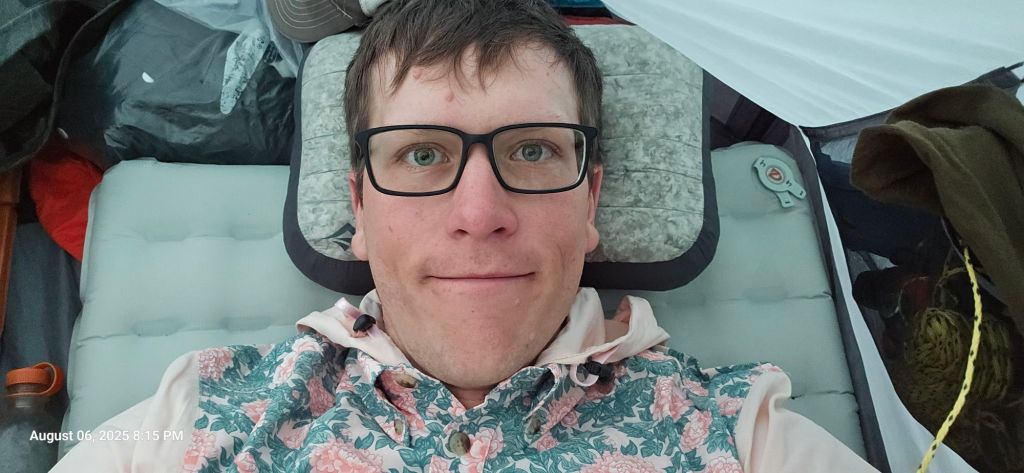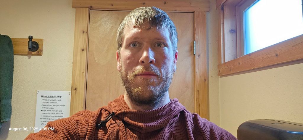 We made it to the camp, found our package, got a shower, did the quickest load of laundry possible, and charged our devices. Jason decided it was time to shave. It turns out that he just doesn’t look good with a beard. Jason also got a new shirt in the box.
