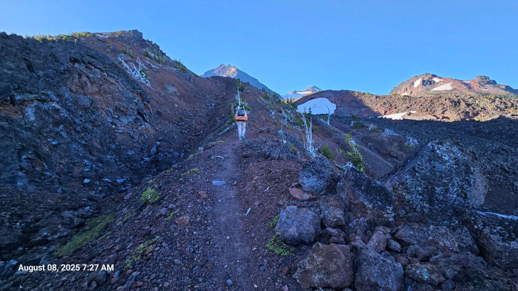 On the way to the obsidian fields, we crossed over a little more lava rock. We stopped and talked to one hiker and told him not to worry too much about the lava, just enjoy the change of terrain. Turns out he lives on the Big Island in Hawaii – he’s a pro at lava hiking!