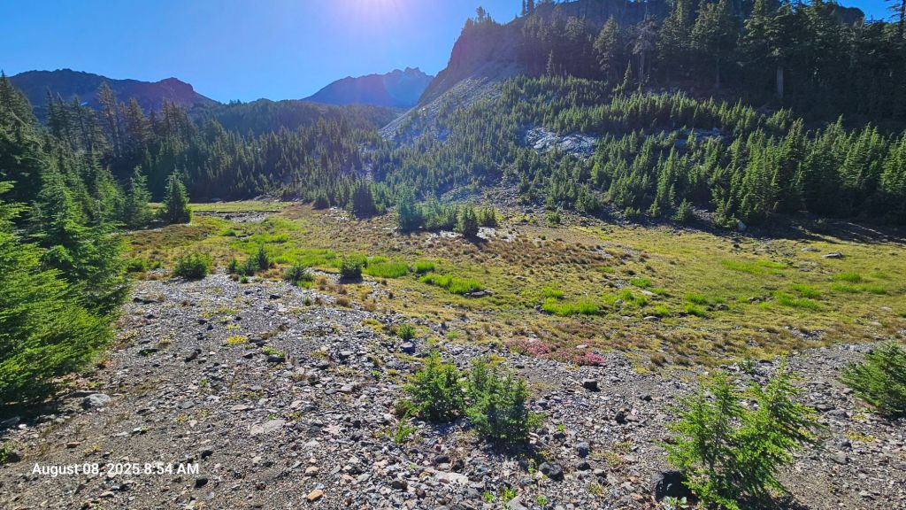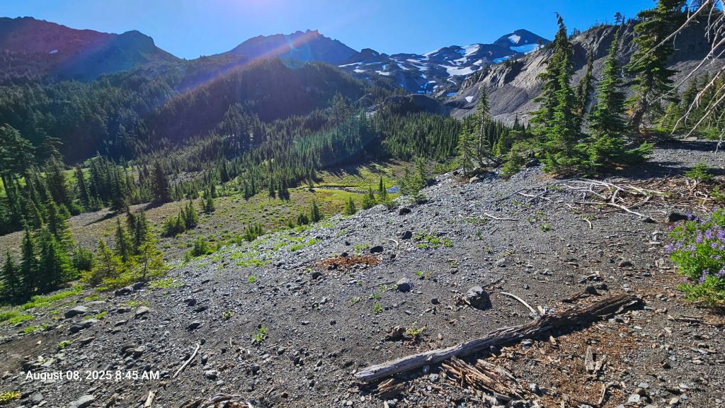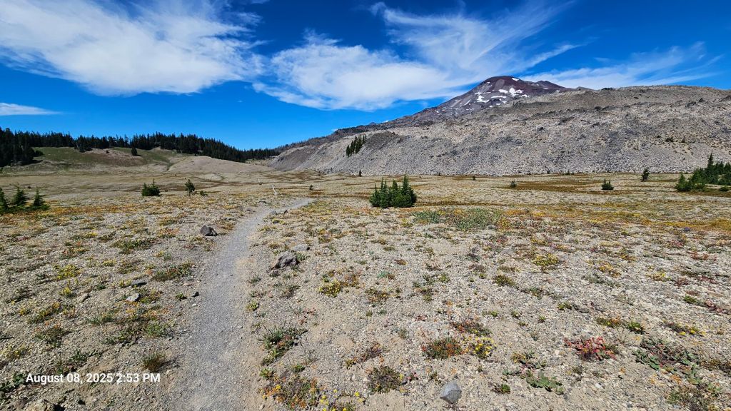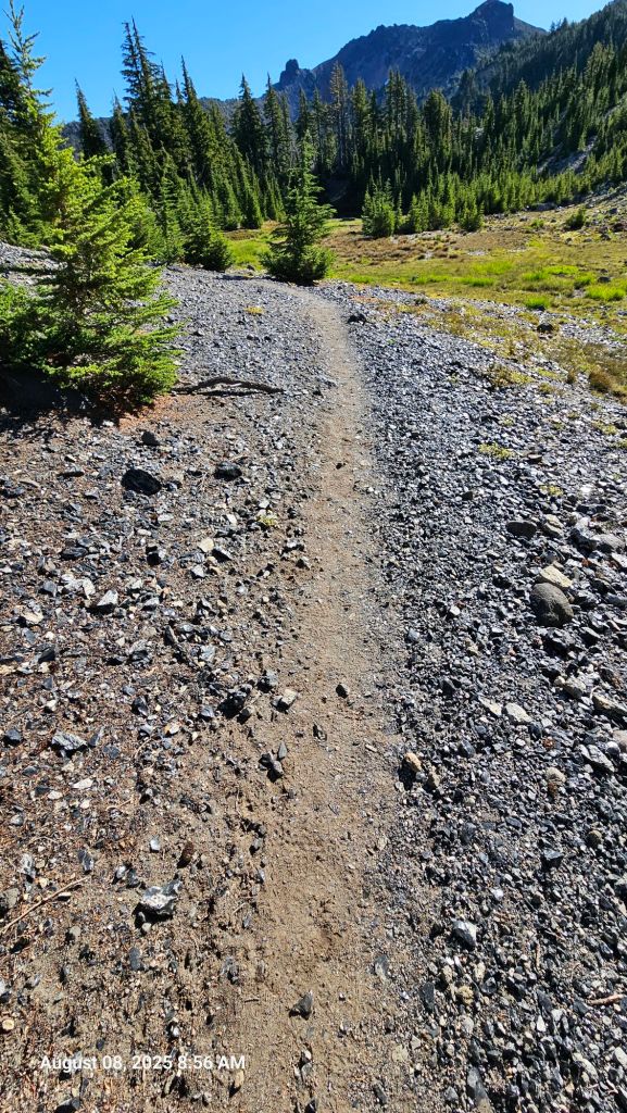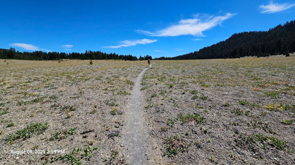 Leaving the obsidian fields was hard because of how interesting the landscape had become. There were lots of side trails in that section, including one that led to Obsidian Cliffs. We’ll have to come back another time.