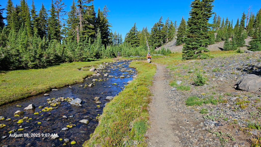 We continued on and had lunch by another creek. The northbound hikers, and there’s a lot of them now, we asking if the scenery they were walking into was good. I guess they were getting sick of the “green tunnel” of southern Oregon. The scenery for us might be toning down a bit.