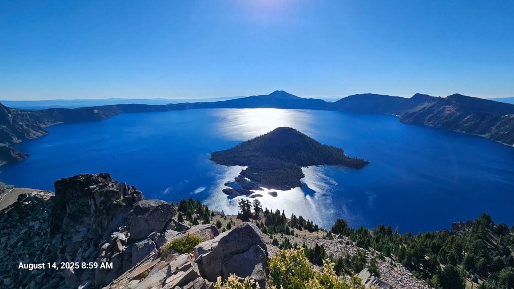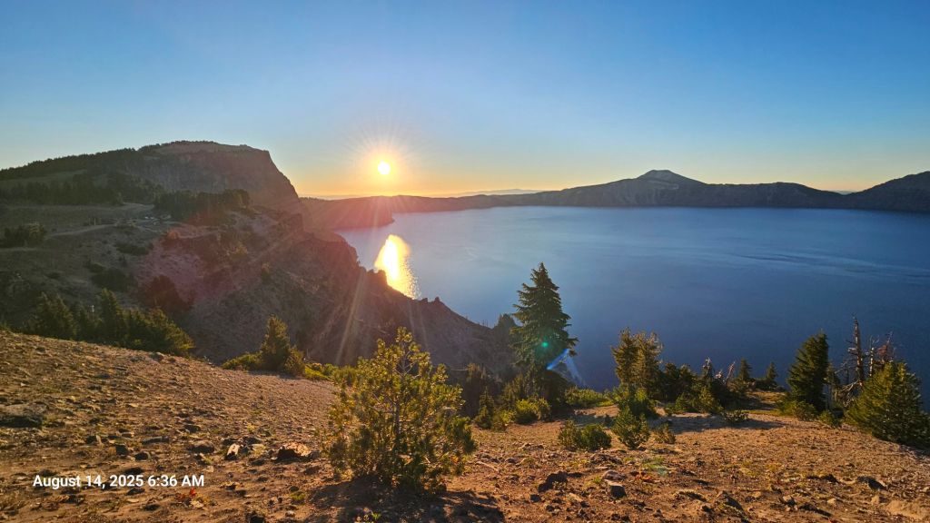 We decided that Crater Lake is pretty neat and we want to stick around a bit. We lucked out and got a boat ride ticket for tomorrow afternoon. We’ll have to figure out how to get to the boat ramp, but that’s a tomorrow problem.