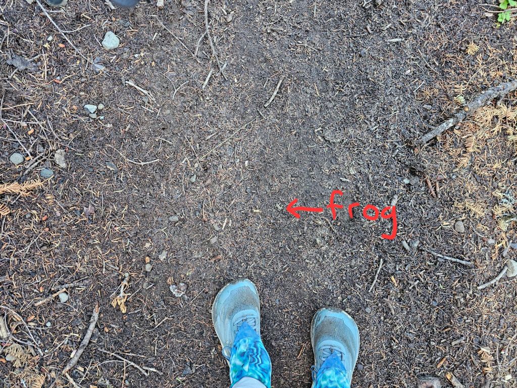 The day started unexpectedly: frogs. The trail was covered with tiny frogs who were too scared or too slow to really jump out of the way. We were playing hopscotch to avoid stepping on them. And, we were 100% successful. No frogs were trodded on.