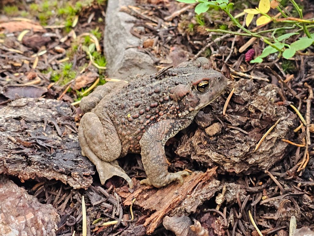 After the tiny frogs subsided, we saw an adult frog. Probably the same species as the tiny ones. He just managed to hop higher up the mountain.