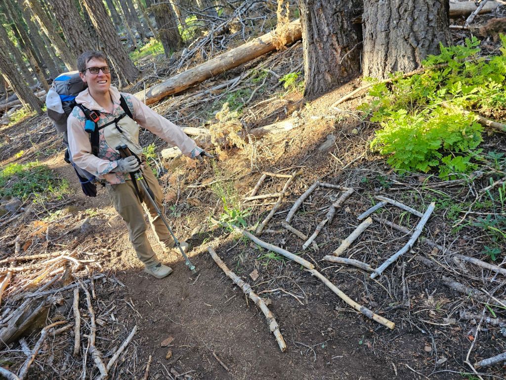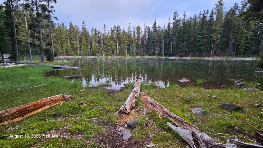 We were expecting to wake up to a wet tent from the condensation near the pond. Pleasantly, the tent and our things were dry. The first few miles were easy – all downhill, nice soft pine duff, minimal blowdowns.