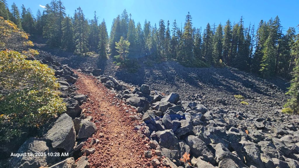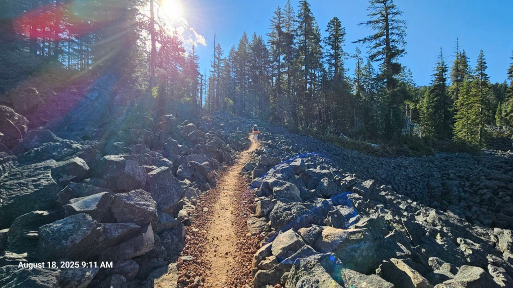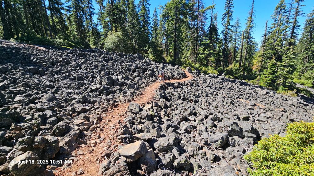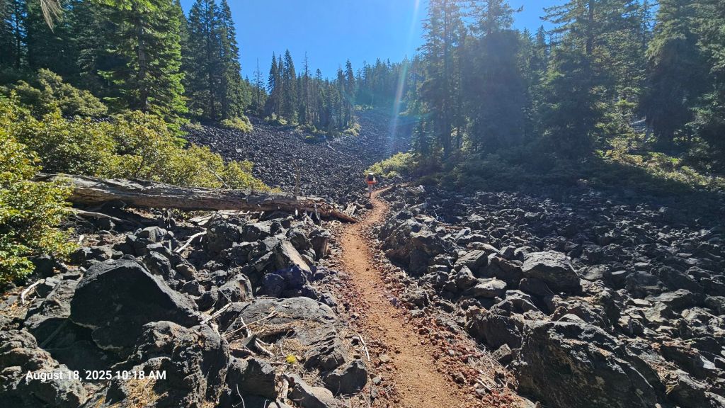 Then we hit the lava rocks around Brown Mountain. Fortunately, the trail crews who manage this section are amazing. The trail was cleared of large stones and a layer of finer rock laid overtop to make it easy stepping.