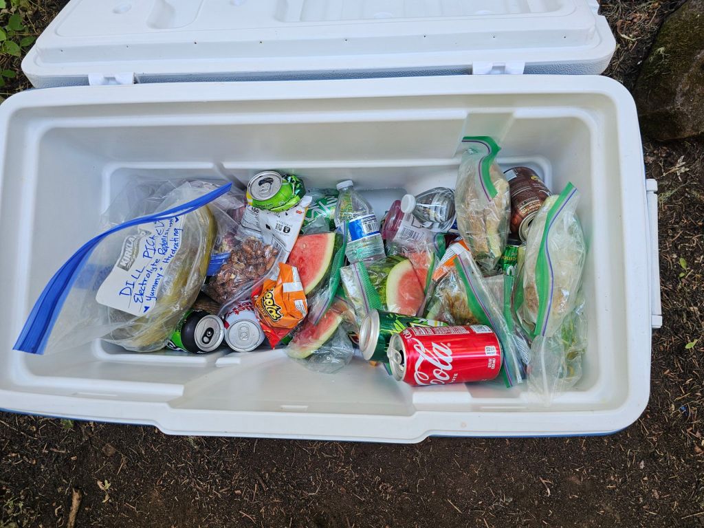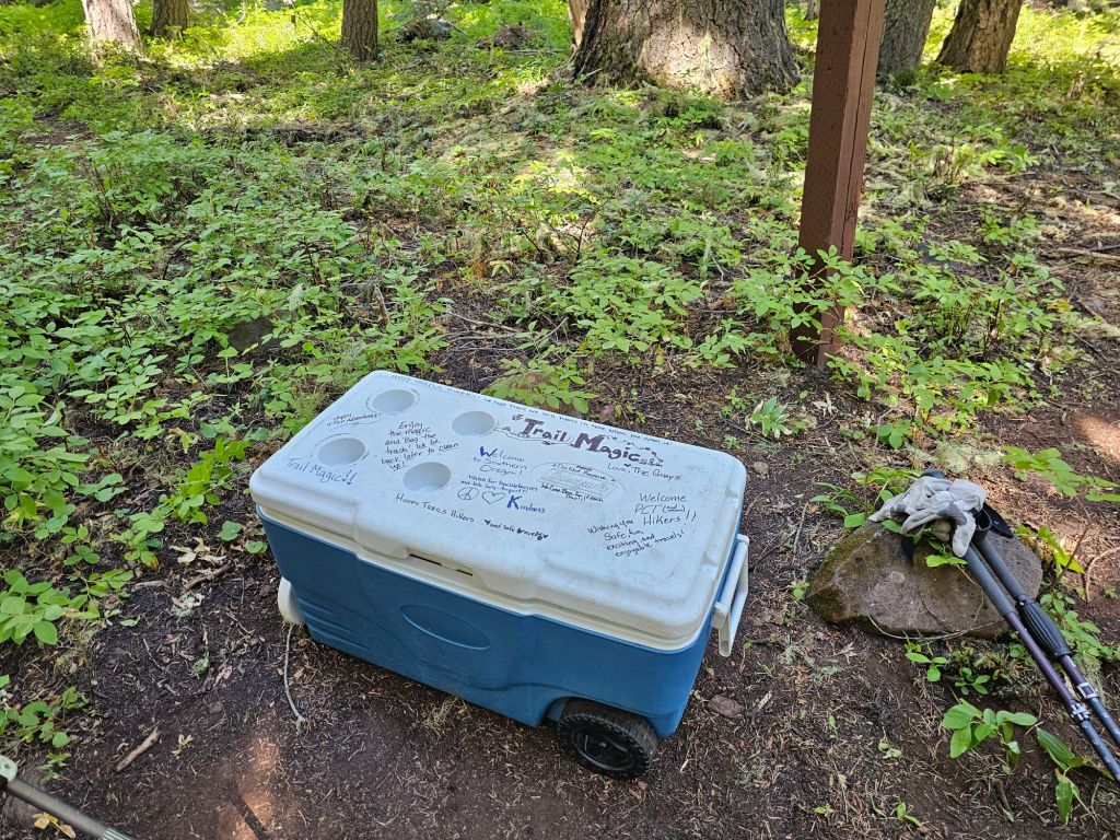 Some northbound hikers told us about some magic up ahead. We were greeted with a cooler full of snacks and drinks from the Grays family. It was a wonderful treat!