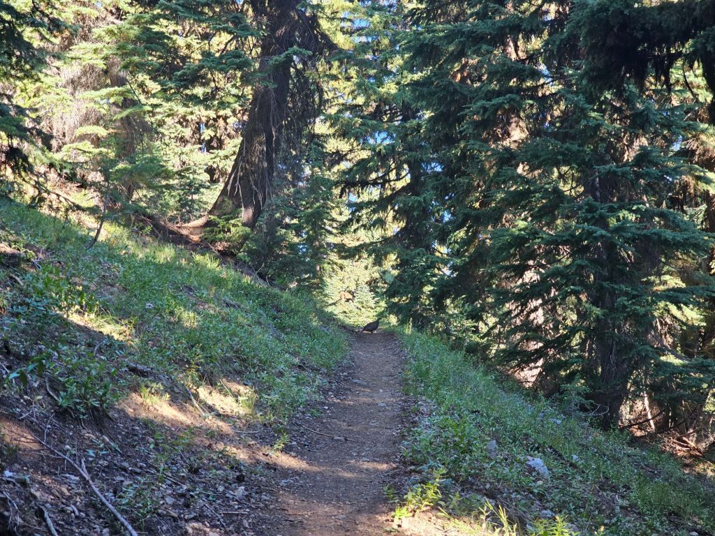 Only five-ish miles to California! Fortunately, the border was mostly downhill, so we had an easy morning getting there. We briefly encountered a grouse waddling along the trail.