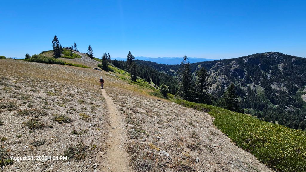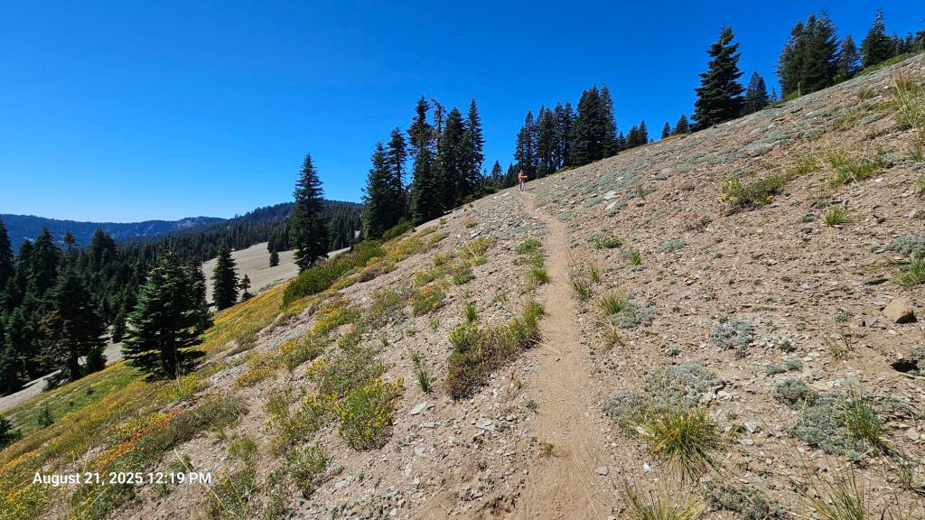 The trail was fairly exposed, and Jason revelled in his new sun umbrella. We occasionally caught glances at Mount Shasta on the horizon.