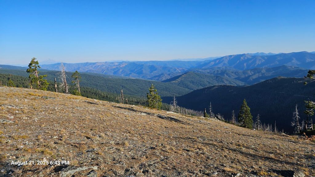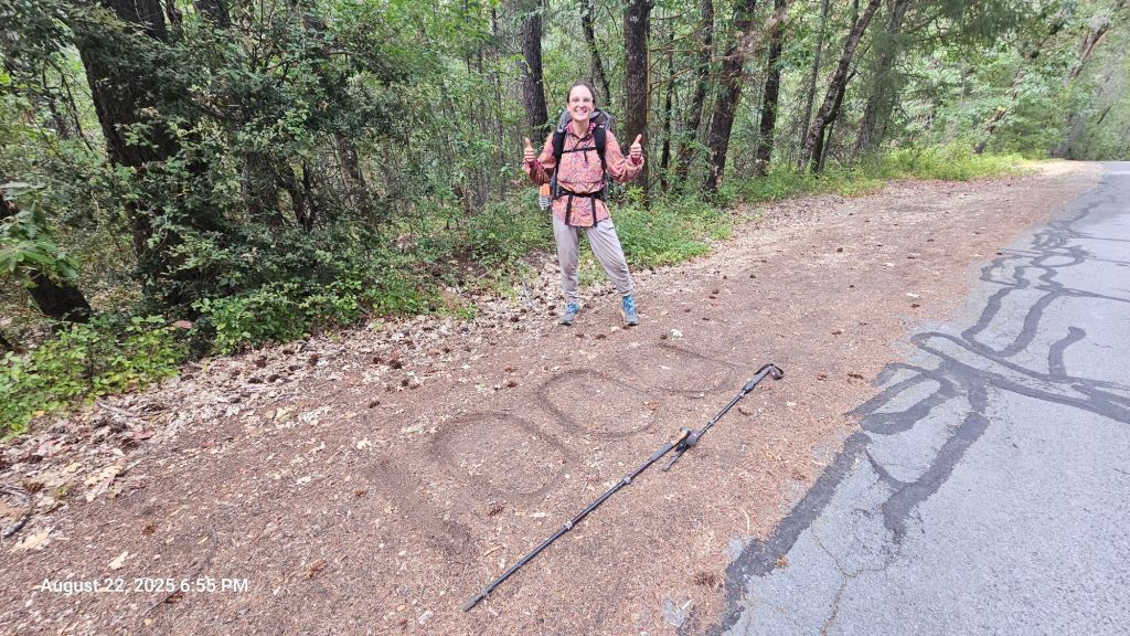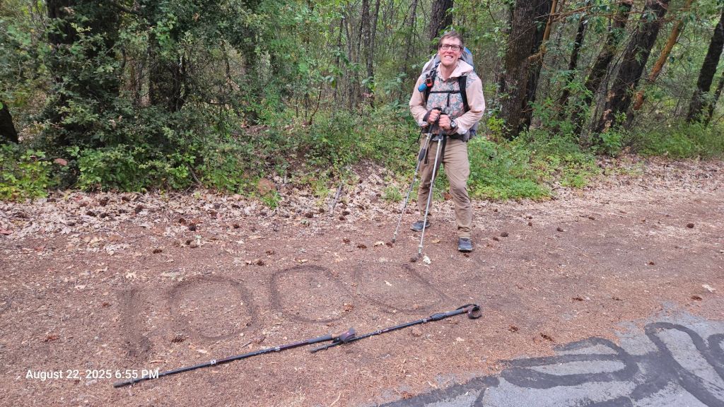 After several hours, some cloud cover appeared, and we set out to make it to the campground near Grider Creek. It was a road walk to get there and we crossed our 1000 mile mark during it. Not the most scenic, but you take what you get, I suppose.