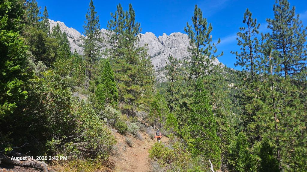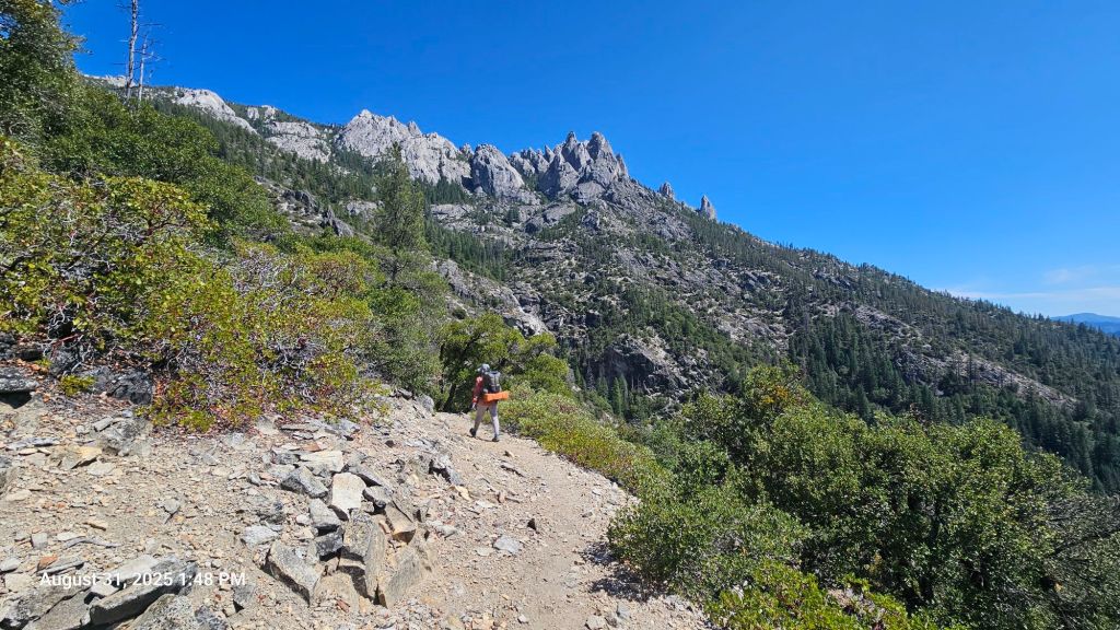 However, we had a serious descent into the Castle Crag wilderness. For nearly four grueling miles, we descended at a constant rate of nearly 600 ft/mile. Like, walking downhill seems easy, right? But the rockiness and exposure made it hot and painful on the feet. Uphill is hard on the muscles, downhill is hard on the joints. I almost would’ve preferred walking up this hill instead of down. Almost.