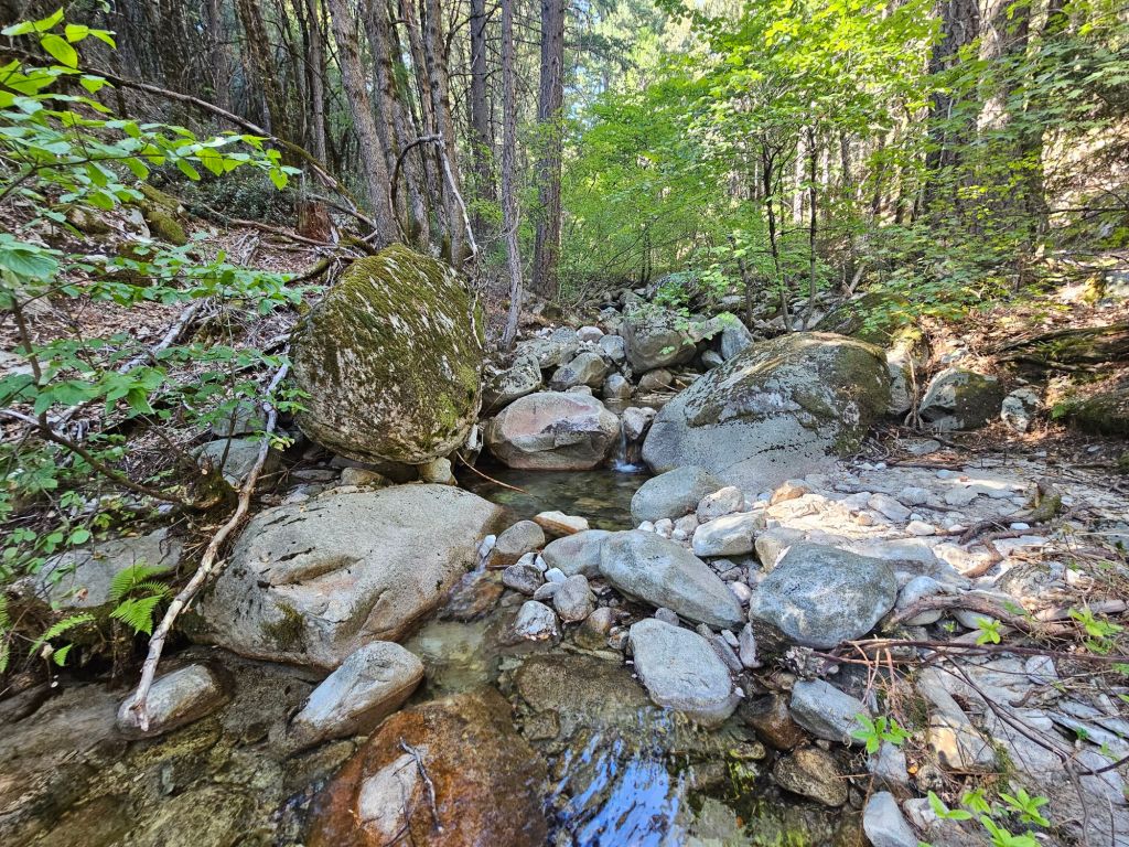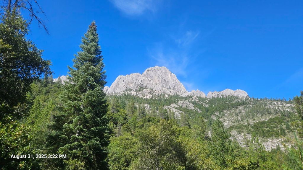 We finally arrived at Castle Crags State Park for the night. It’s a fantastic park with great amenities, including showers! The camp host greeted us and offered a safe place to charge our electronics. We’re lucky we got here when we did. The camp host is heading out tomorrow after spending the whole summer here.