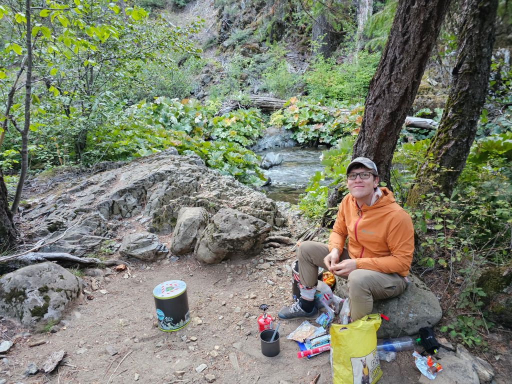 We woke up at dawn and were lucky to have a pit toilet at the nearby trailhead – luxury! After a brief breakfast and coffee to prep us for what we knew would be a hard day, we departed our pretty creekside campsite and started a 15 mile climb.