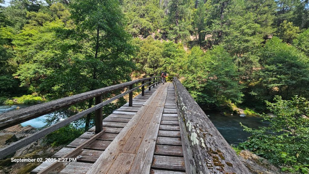 We crossed a few dirt roads, but those aren’t particularly exciting. We crossed a beautiful river with a great bridge. That was a highlight! We came across another box of trail magic, but most of it was already picked through, and we had just resupplied, so we didn’t take anything.