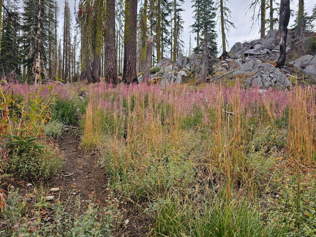 Eventually, we rose above the forest and into more open high mountains. It wasn’t exactly alpiney, but unique in its own way. Maybe that’s a difference between the Cascades and the Sierra Nevadas.