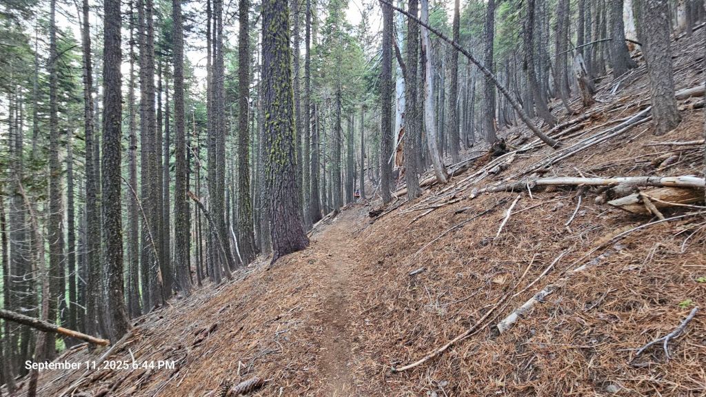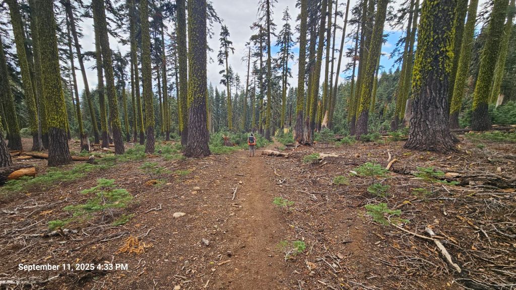 We started off in the forest. Some patches of trees remained, but most were burned from the 2021 Dixie Fire. We’ll finally leave that burnzone today. We’ve been in the thick of it since Lassen Volcano National Park.
