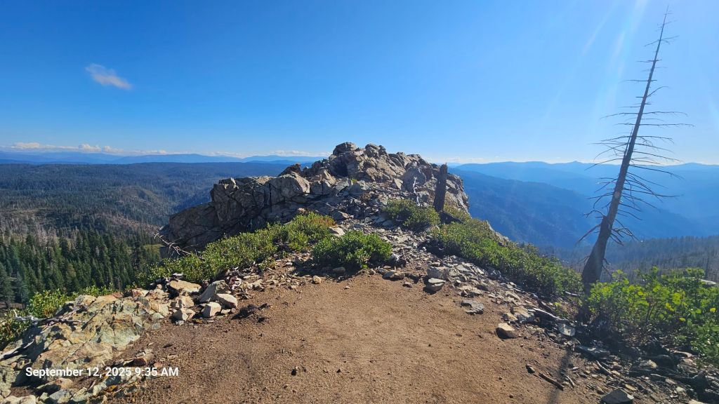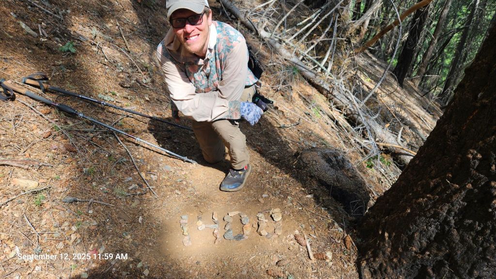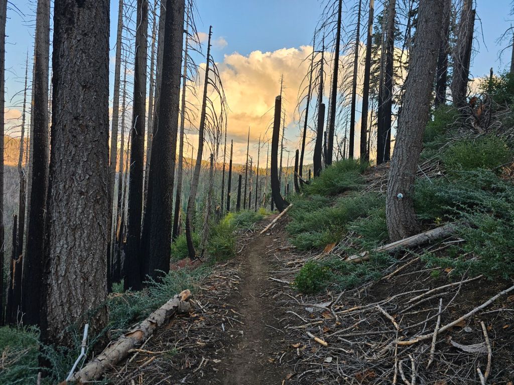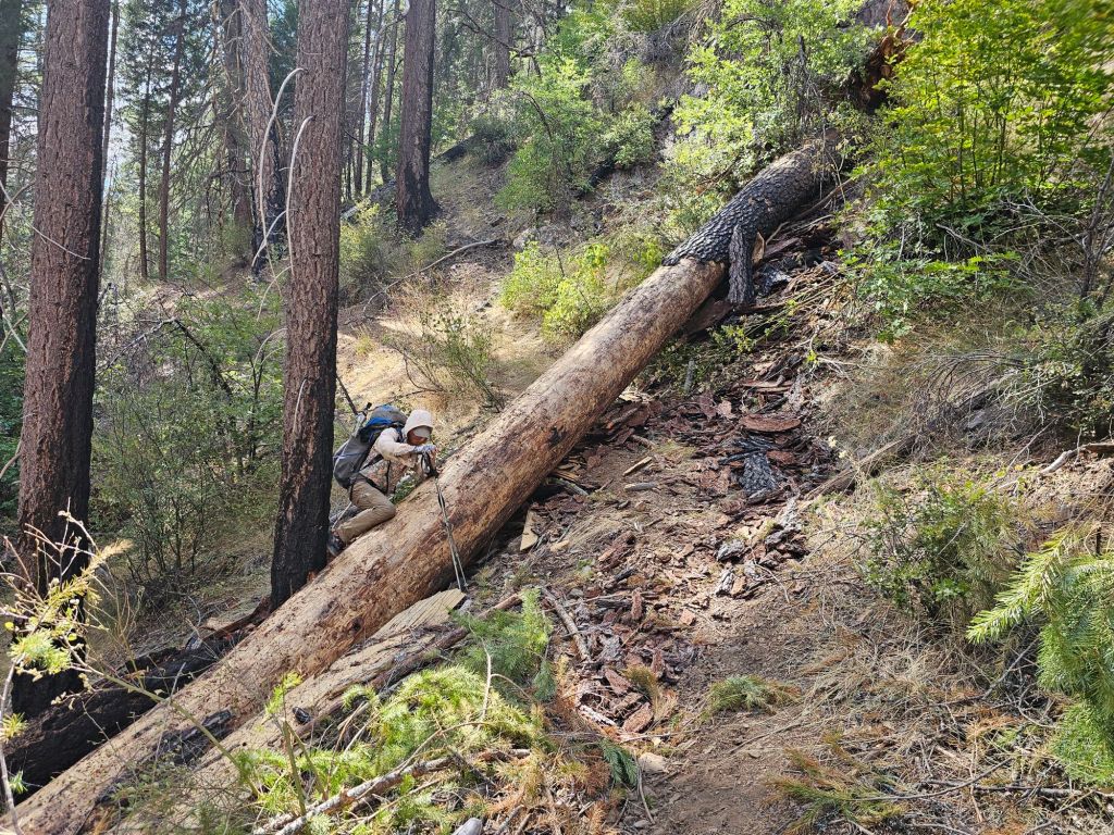 More burnzone waited at the top of the climb. Thankfully, the day was starting to cool. Even more wonderfully, we seemed to be just a day behind a trail crew which cleared out over 200 blowdowns! They are our heros. We had heard a lot of people complain about this section, but we had it much better. The fresh sawdust and newly maintained trail ensured our spirits didn’t completely shatter. We can imagine how difficult this would be with poor trail conditions. We still took a break on a rocky hill and nearly decided to call it a day there.