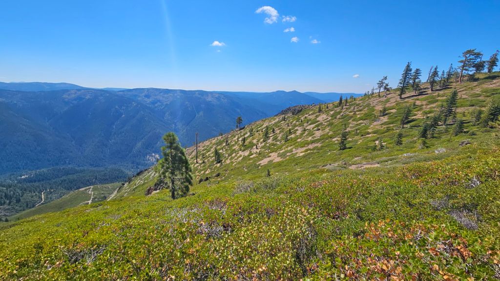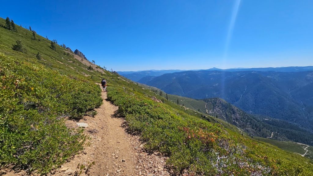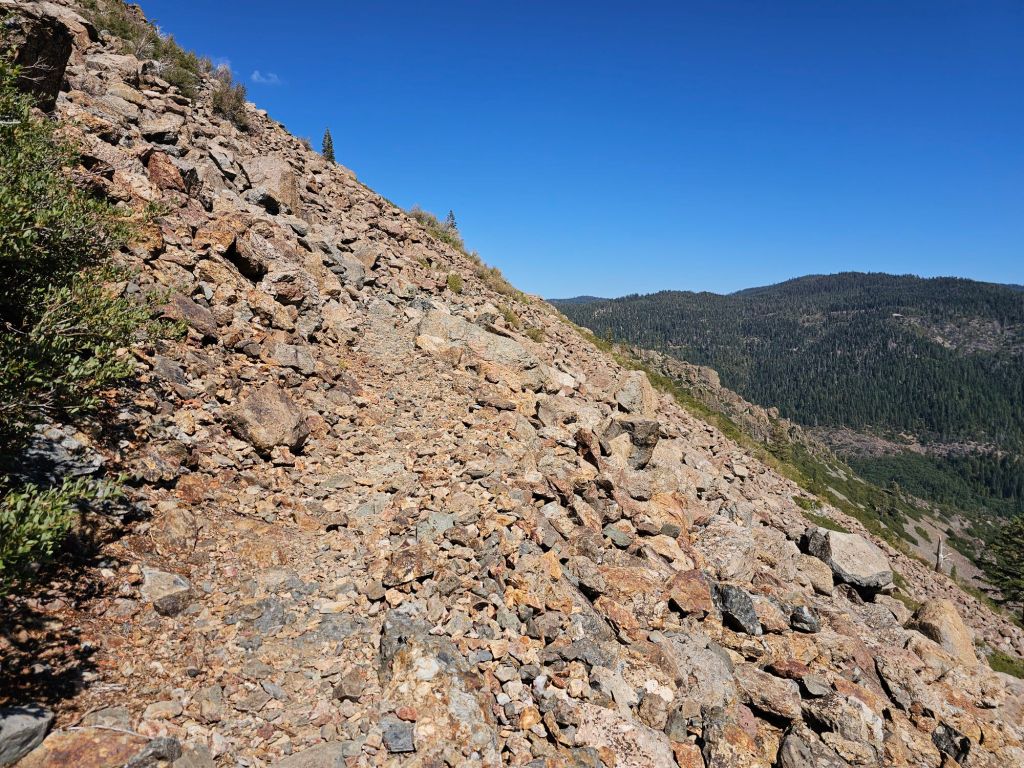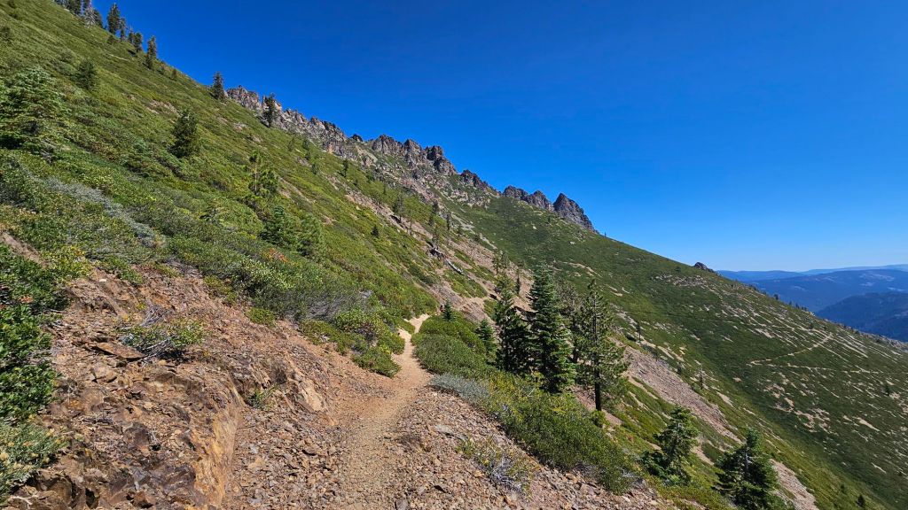 The ridge we crossed over was the trail junction to the Sierra Buttes. The other side was rocky and exposed. The trail reminded us of the North Cascades.