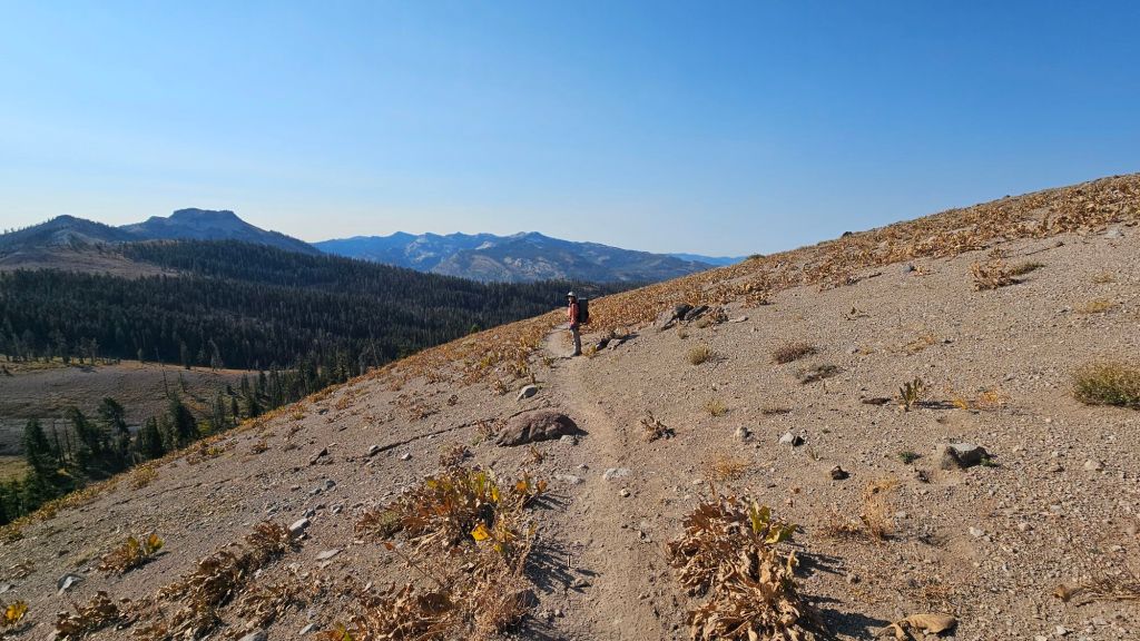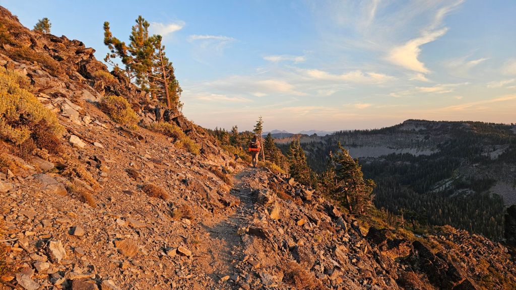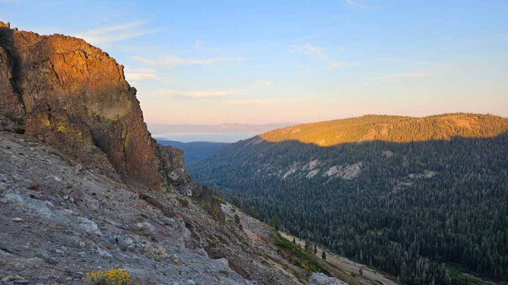 The last ridge we walked gave us glances at Lake Tahoe. The fading sunlight, the oranges and pinks in the sky over the lake were spectacular. We will soon be in South Lake Tahoe, our next resupply stop!