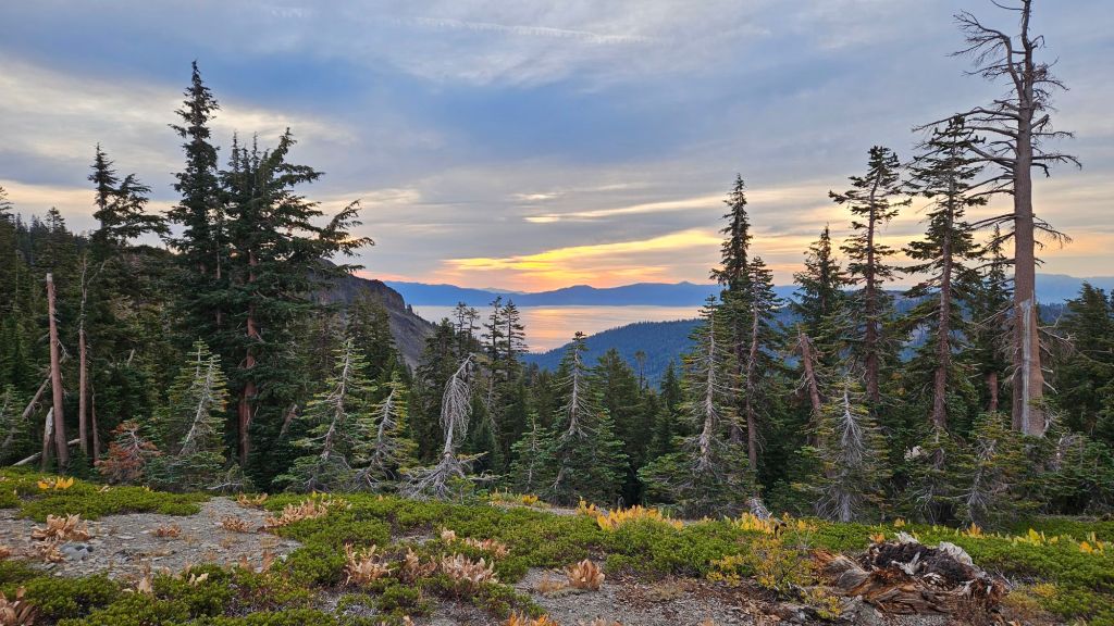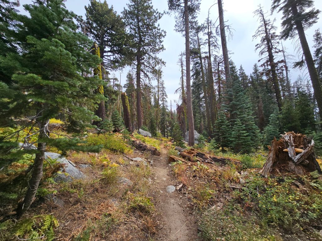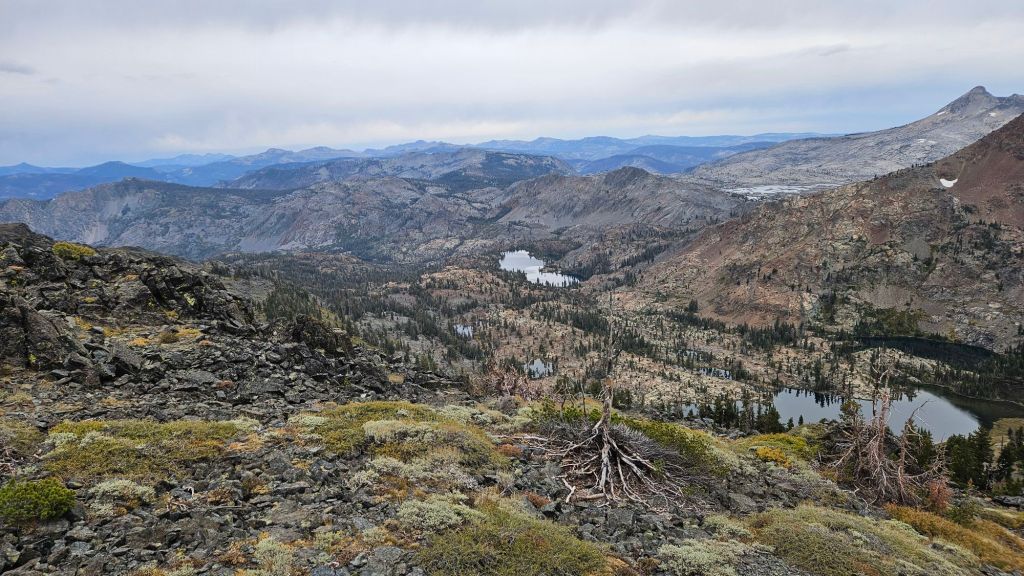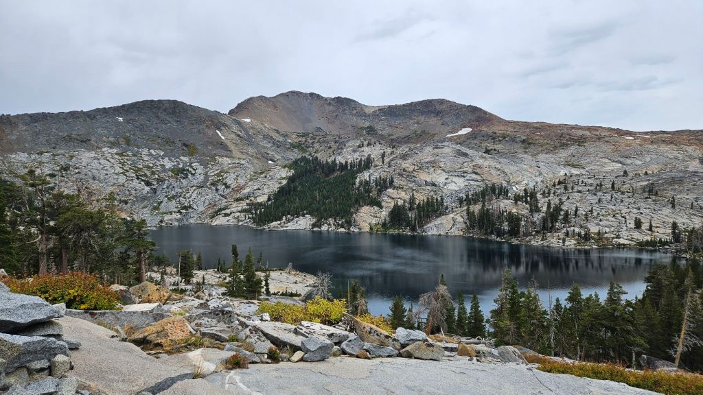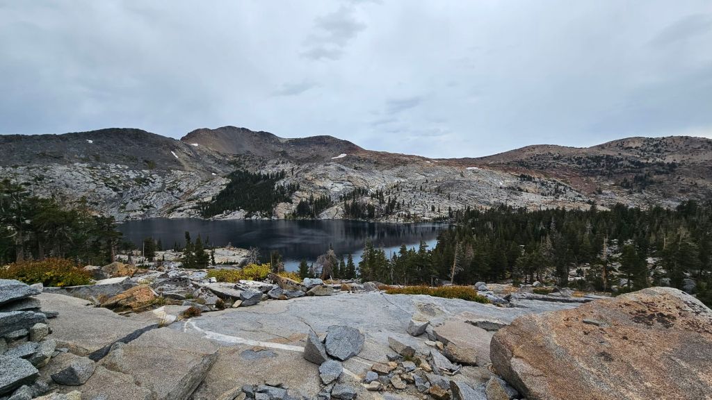 Nevertheless, we feel like we’re in the Sierras proper now. High peaks and lakes surrounded us. Desolation Wilderness offered wonderful views of the barren landscape. We merged with the Tahoe Rim Trail at our campsite last night and saw a few hiking that loop.