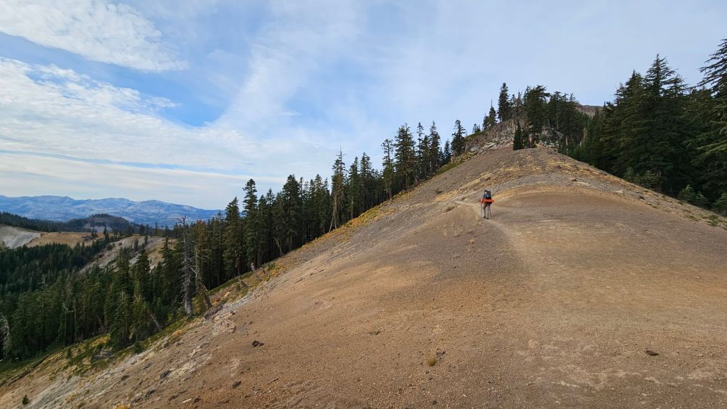 Today was fairly easy, and super scenic. The most challenging part was the rocky trail. Jason’s shoes had carried him from Ashland and Alex’s from Crater Lake (she got 730 miles on them! Go Topos!). With all the mileage, our shoes had become slouchy and long lost all cushioning. Our feet have toughened up, sure, but several continuous hours of walking over jagged rocks still hurt.