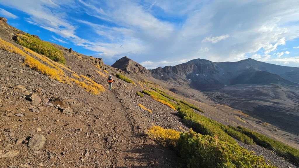 Alex’s morning was less exciting. She slept until the sun hit the tent and made it uncomfortably warm. She enjoyed a camp stove coffee before packing up camp and hiking to the trailhead, stopping to take lots of pictures at the newly dramatic scenery. All went smoothly.