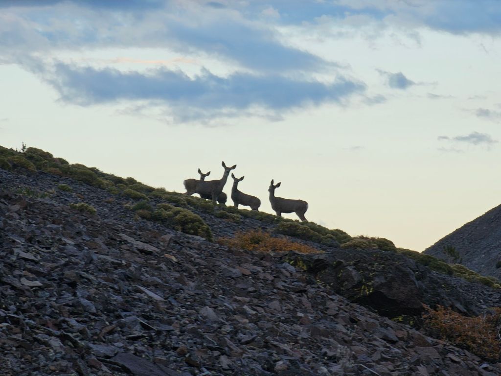 As we approached our campsite, some deer were wandering above the trail in the fading sunlight. What on earth were those rascals doing up on this rocky and mostly barren terrain?