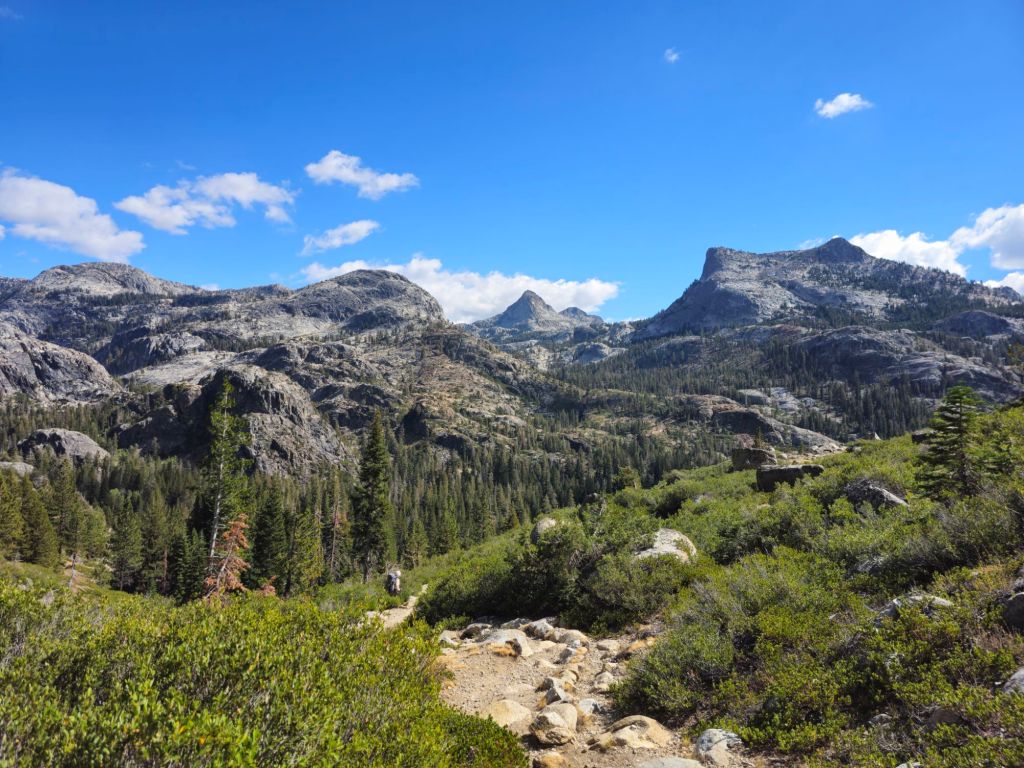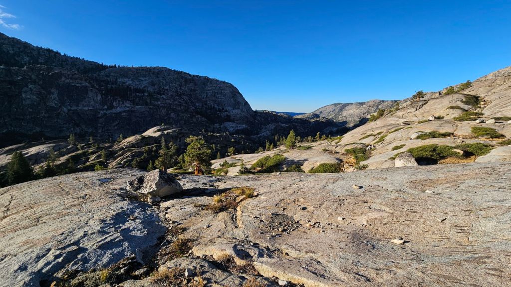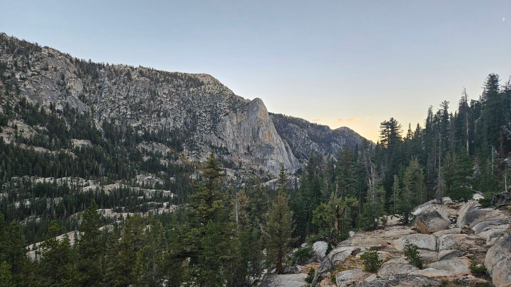 We climbed over so many steep mountains today! We started our day with a gentle 500′ climb over 0.6 miles, then a 1100′ descent over two miles. That was probably the easiest section of the day. The views of the exposed granite and bewildering mountain tops were inspirational.