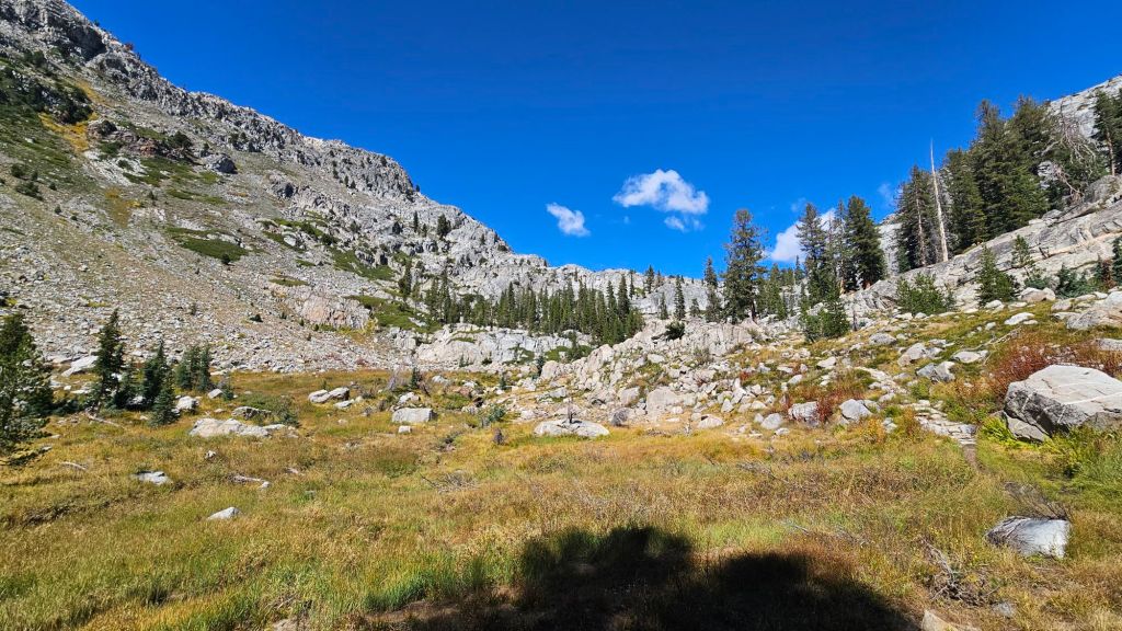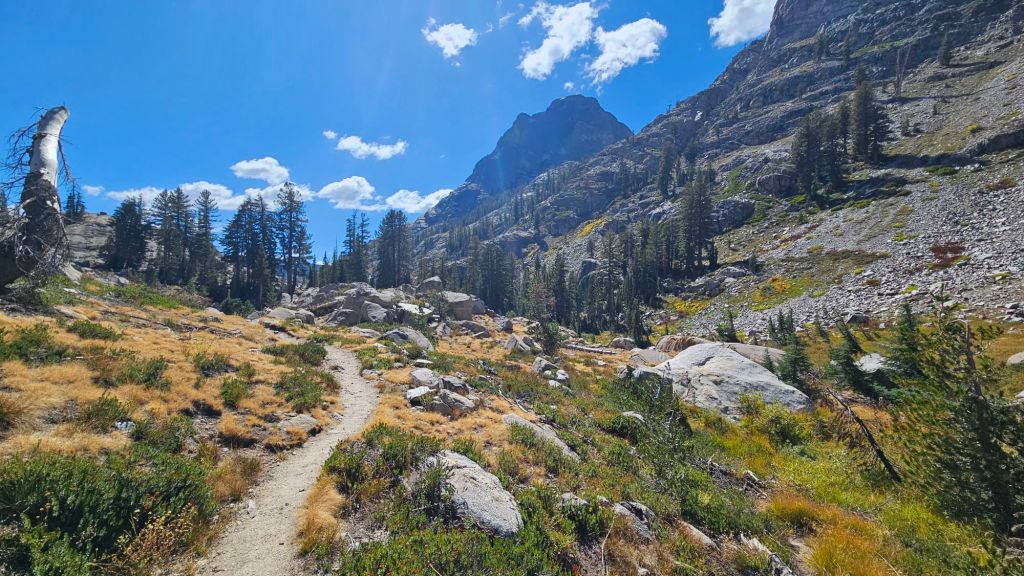 Coming down the other side (750′ descent in 1.2 miles) gave good views of the bare peaks surrounding the valley.