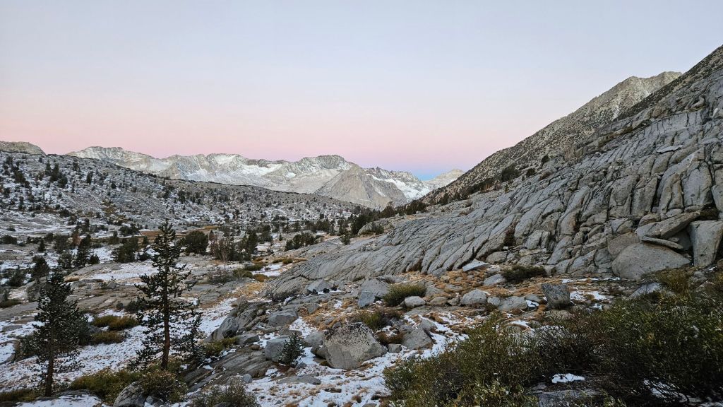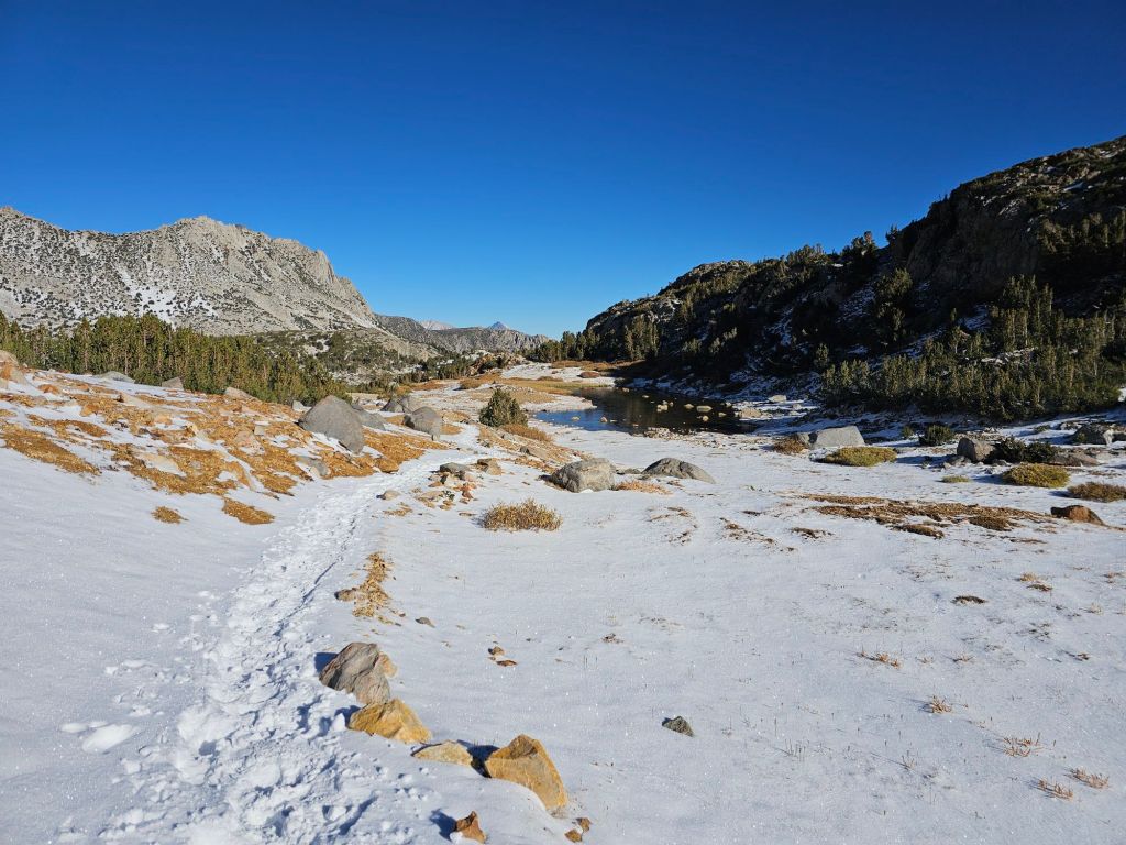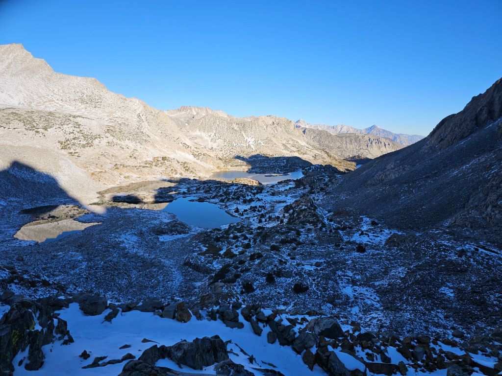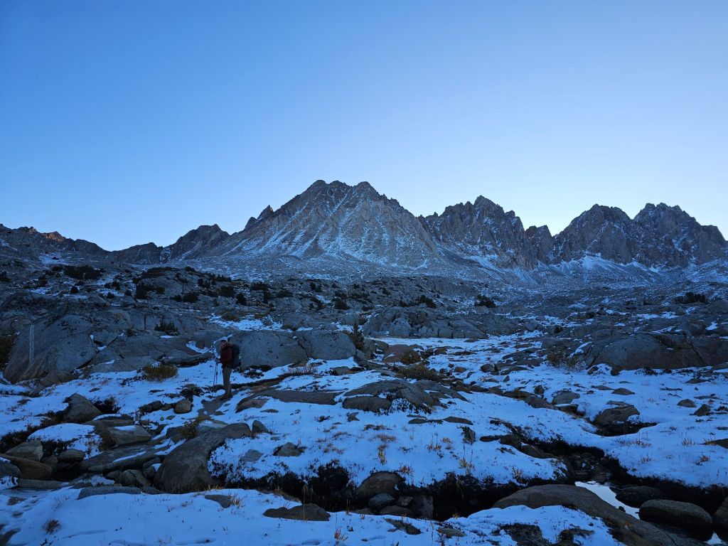 We finished the hike out of Bishop Pass and made it to the trailhead by late morning. It was absolutely freezing when we got up, but we trudged on with numb fingers and toes. We slipped on patches of ice, falling a few times. Jason needs a thicker pair of gloves. We both need microspikes, if the passes ahead are similarly icy. The views were mind-blowing though. Totally worth the discomfort and bruises.