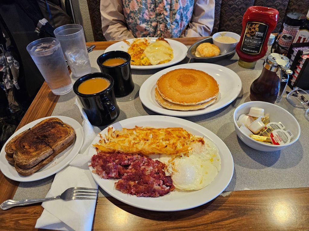 Lunch: J – Denver omelet (A), A – corned beef (A+)