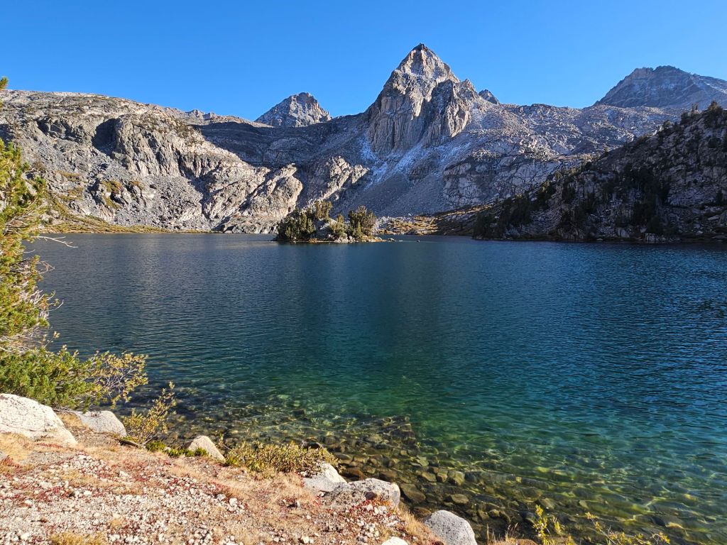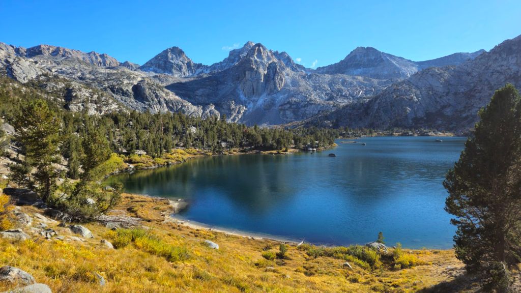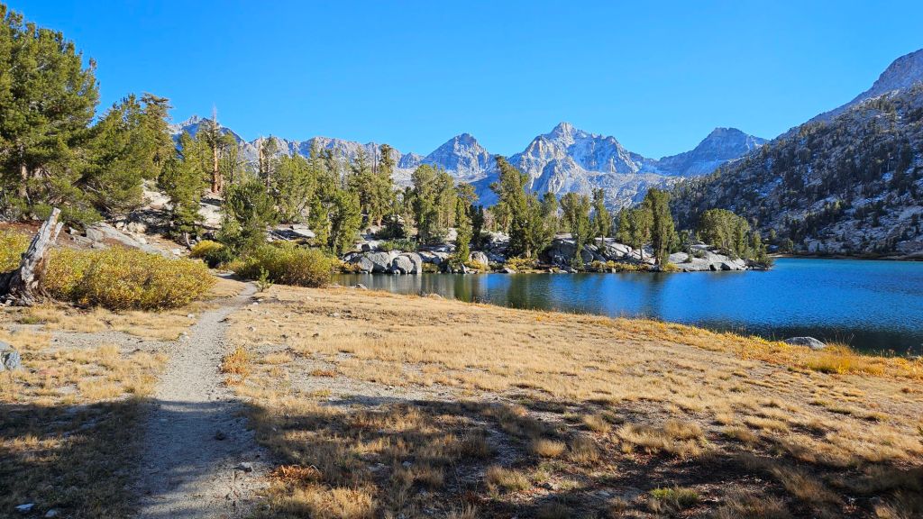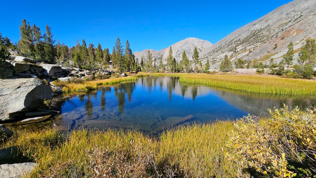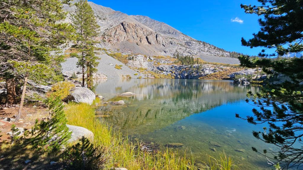 The valley leading to Glen Pass was dramatically different than our descent from Pinchot. Numerous lakes, a more gentle slope, and more stands of trees gave rise to a completely different ecosystem. The three mile stretch around Rae Lakes might be the prettiest section of trail we had seen all trip. The lakes were crystal clear with lots of trout swimming about.