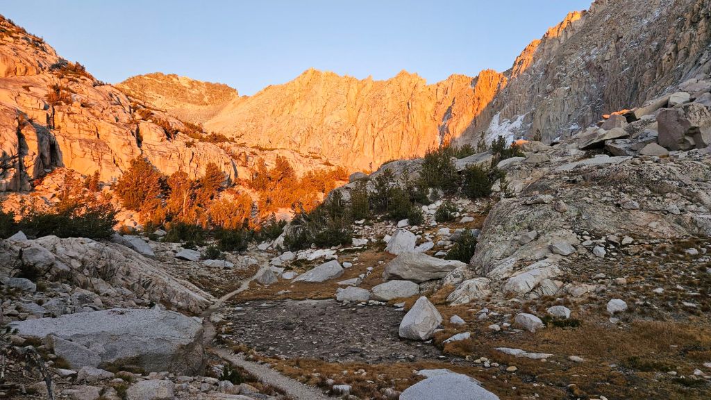 The long day of ascending and descending, and admiring the stunning scenery meant we arrived to camp in the dark. Forester Pass is tomorrow, then we’re out of the high passes and maybe out of risk for getting snowed in.