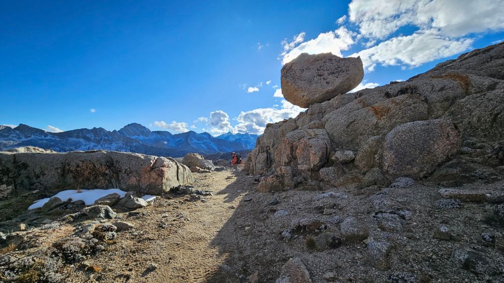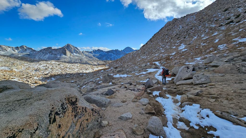 It wasn’t all for not. Bishop Pass was stunning. Just yesterday, we battled with the foot-high snow. Today, it was mostly melted out, and the sky was clear, revealing the tall peaks that surrounded the Dusy Basin. We were astonished by how quickly the snow melted out. This is a good sign for the next few days as we hit some of our highest points on the whole trail. Hopefully, the trail will be mostly snow-free and easy-going.
