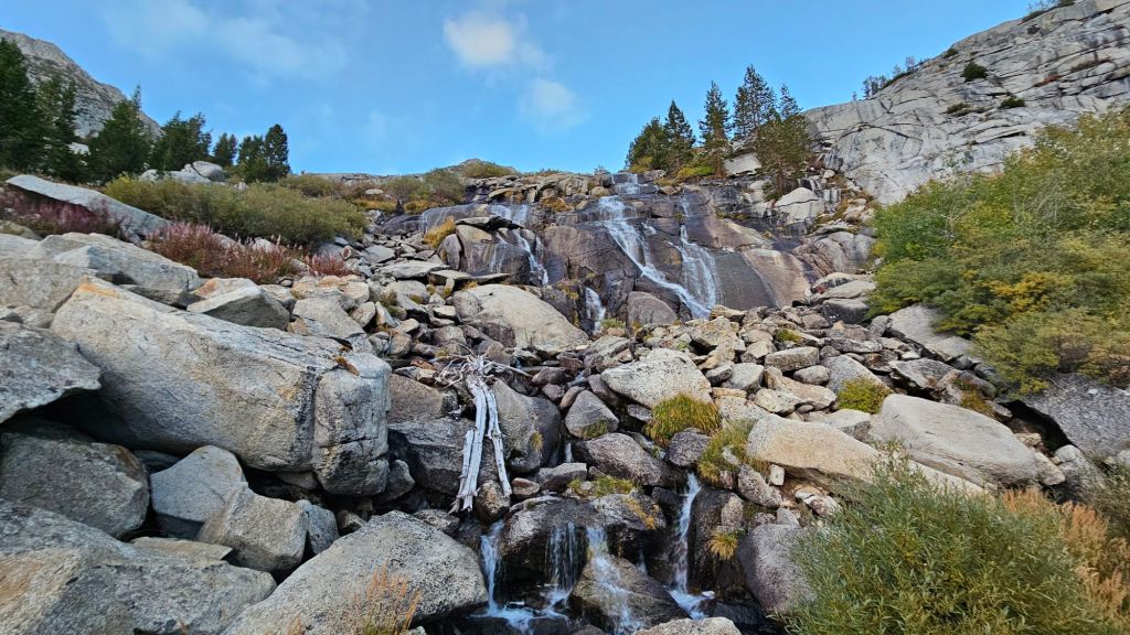 We heard from some hikers going into Bishop that a snow storm was expected to hit in five days. A JMT hiker in the group was getting off trail and quitting his hike for that reason. Our plan is to clear the high Sierras in three days. If the weather holds and we hit our plan, we’ll be out of the woods before a potentially pass-closing storm hits. Apparently, last week was just a dusting. We have our satellite phones to get weather updates, and we asked some people in the outside world to let us know if the weather appears to be moving in more quickly than expected, so we could bail before we get caught in a blizzard.