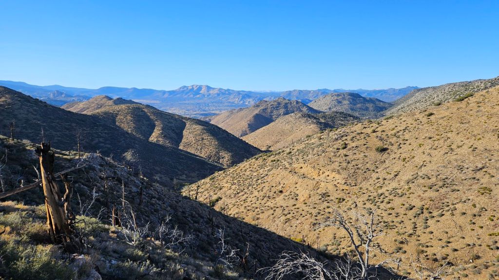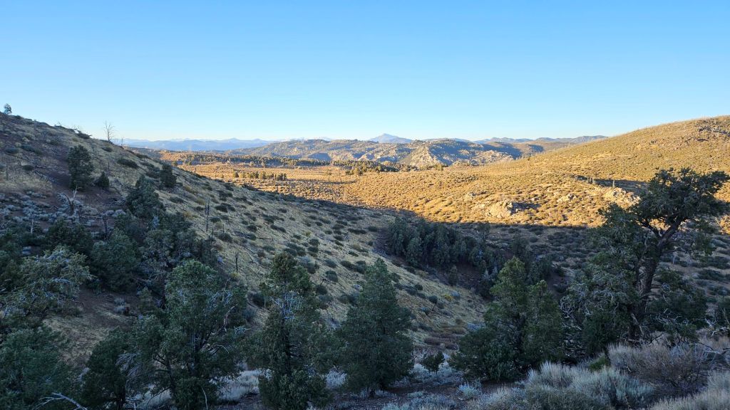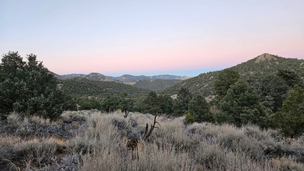 We climbed until nearly sunset – we got a late start, after all. And descended as the sky darkened. A pink and blue gradient formed on the horizon above the mountains. It’s been a while since we had a nearly unobstructed view of the sky for sunset. Before now, steep cliffs or forests shielded the view.