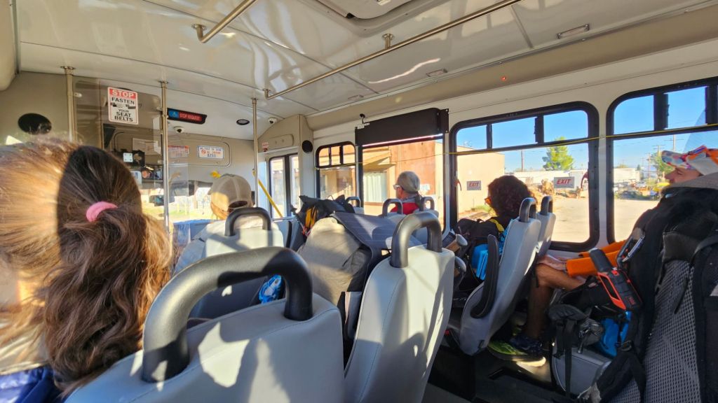 There’s a bus with a weird schedule in Kern County. Monday, Wednesday, and Friday, it runs twice a day between Ridgecrest and Lake Isabella. We got on after our breakfast and were a little surprised and relieved that it was full of other hikers. In total, there were eight hikers getting back on trail after escaping the rain. With our packs beside us, it felt like we were all headed off to school. The driver stopped at Walker Pass to unload us all and drove away with a nearly empty bus.
