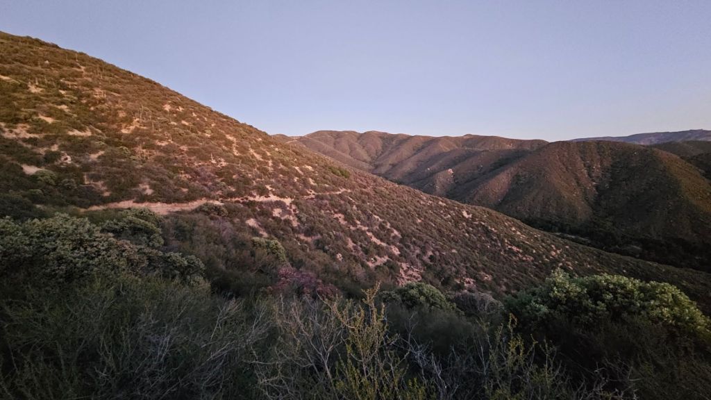 As for the trail and hike, today was a pretty mundane day. It wasn’t challenging, per se. It wasn’t spectacular either. It was the epitome of the desert. Lots of scrub. Lots of old burn zone with reminders that this used to be a lush forest. Long water carries.