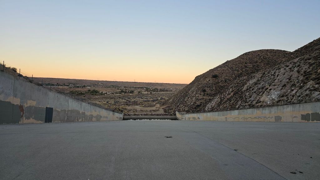 With the disappointment of the non-trick-or-treaty Halloween behind us, we marched on. Right away, we came across a spillway. It seemed out of place high above the valley. We learned that it serves as flood control. It’s unbelievable that water could get that high.