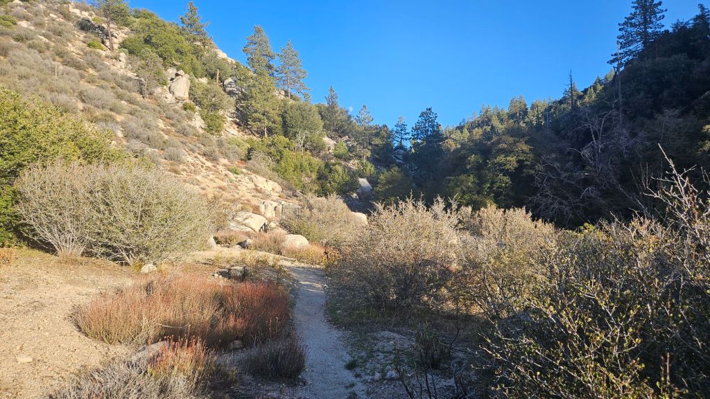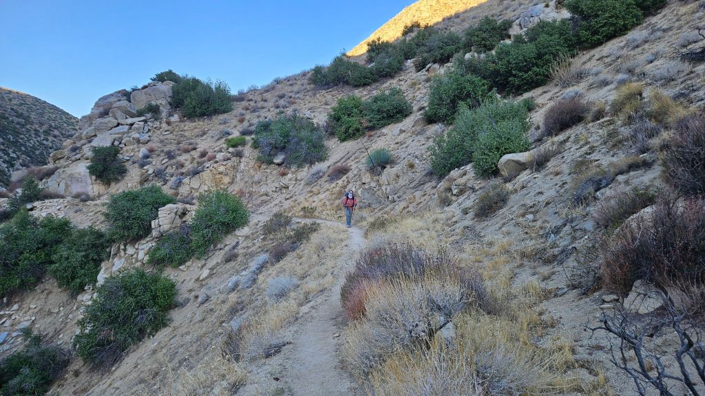 The trail departed from Deep Creek and we climbed over a ridge before joining up with the much more accessible Holcomb Creek. We eagerly got water and rested in the shade. At 4pm and at a much higher altitude, it was starting to cool off, but we were parched.