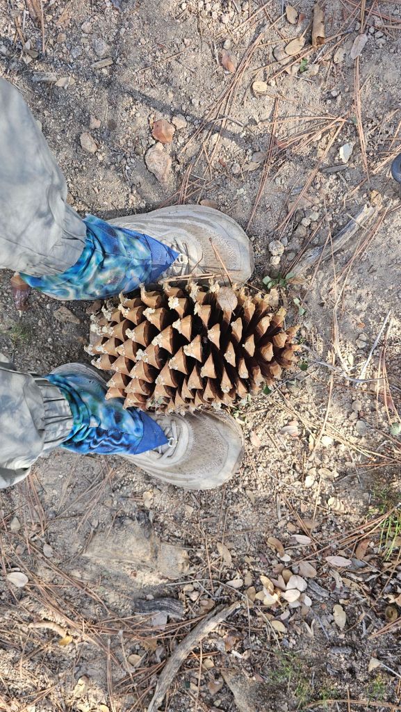 Occasionally, the trail was lined with GIANT pinecones. They’re heavy, too. Getting hit by one falling from a tree could actually become a medical situation.