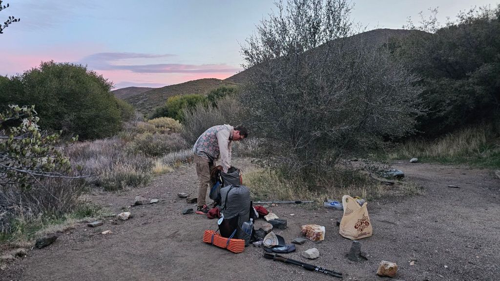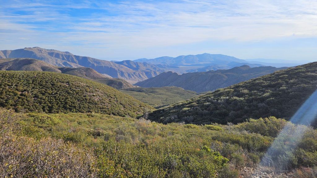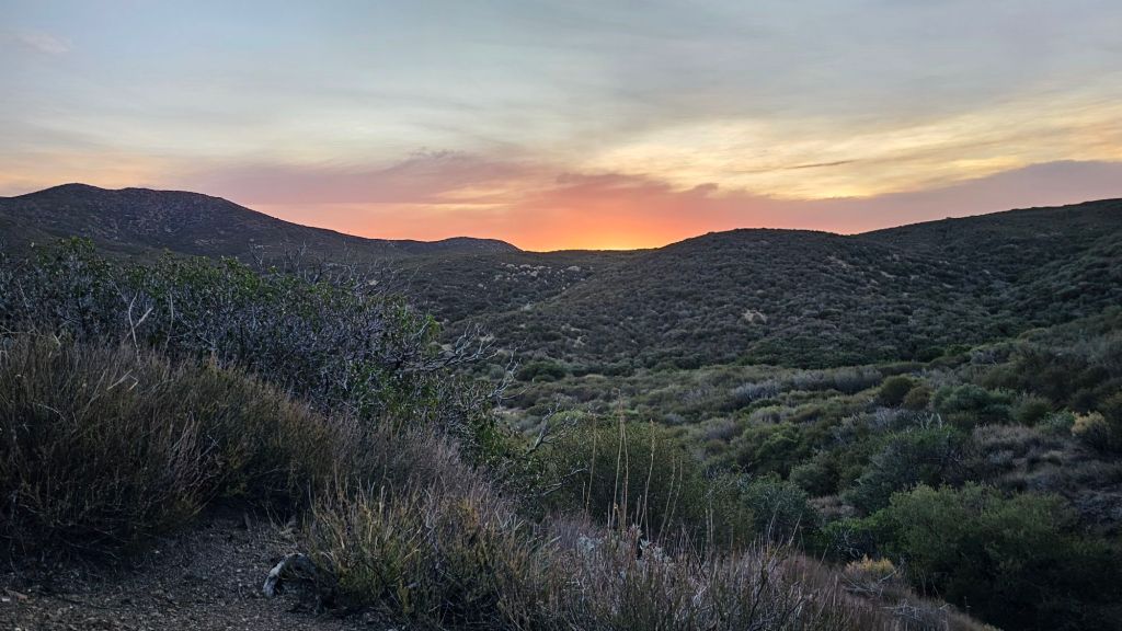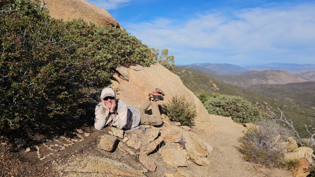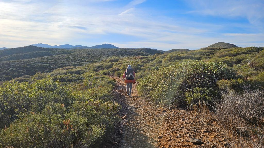 Shortly after these two encounters, we stumbled across trail magic at a campground with a spring – an obvious stop for hikers. The woman giving trail magic was a northbound hiker who had finished the trail just a few weeks ago. On a whim, she decided to drive out from San Diego to provide trail magic. She didn’t know if there would be any hikers. Boy howdy was she surprised when eight of us showed within half an hour! This was the SOBO bubble. Her timing and location couldn’t have been more perfect. She was excited to bring us lonely and forgotten SOBOs some magic. She even took our trash! No more hiking with an empty pie tin. We hiked out with our buddy TimTam.